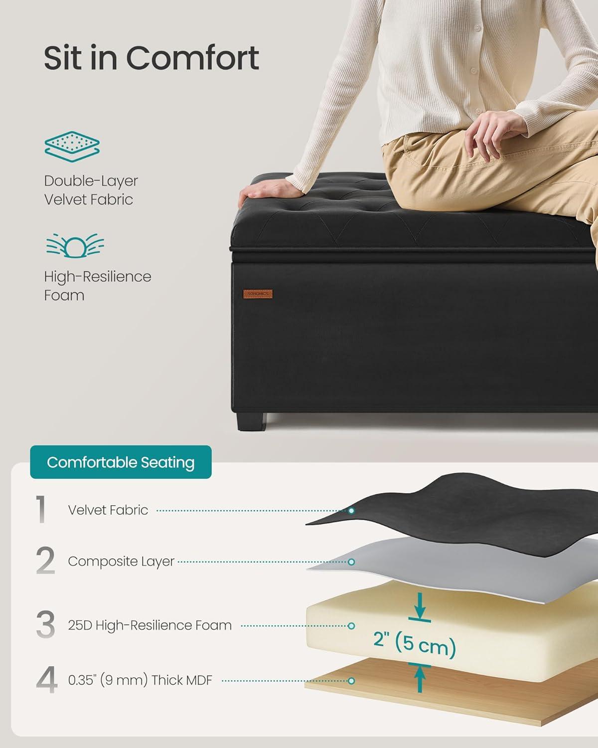 imageSONGMICS Velvet Storage Ottoman Bench Foot Rest with Legs 157 x 43 x 157 Inches End of Bed Bench Storage Chest Load up to 660 lb for Living Room Bedroom Entryway Walnut Brown ULSF089K01Ink Black