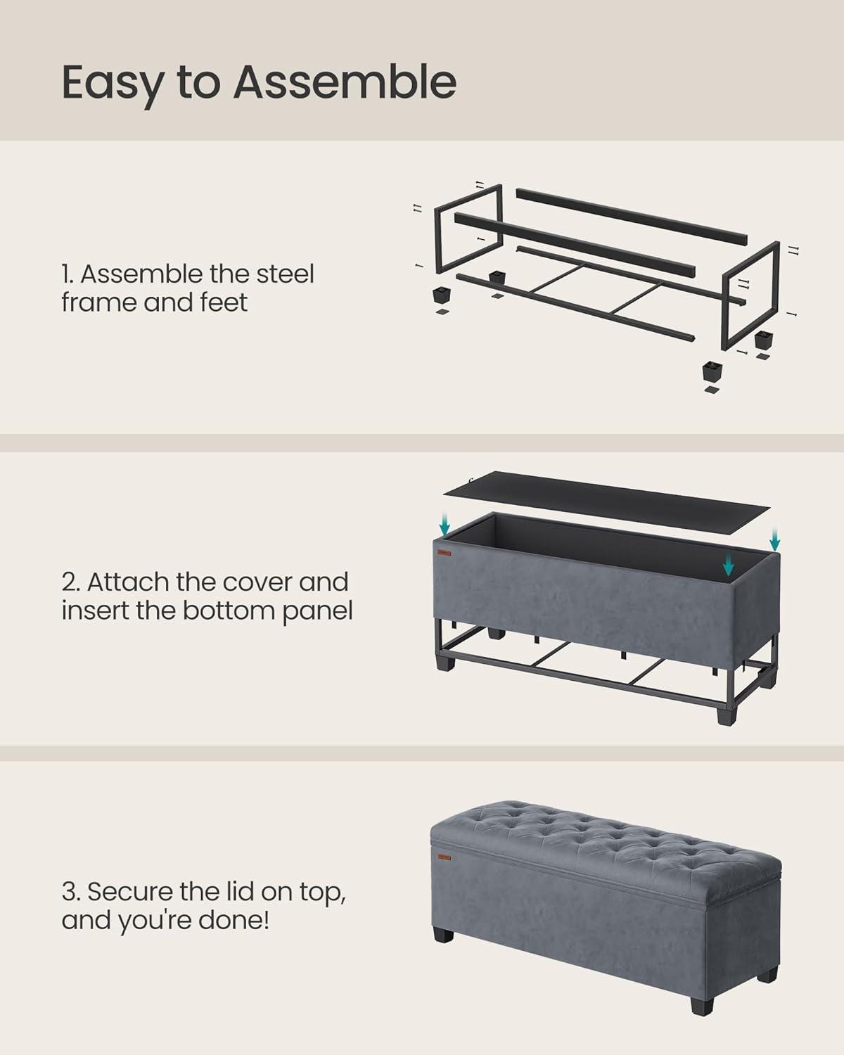 imageSONGMICS Velvet Storage Ottoman Bench Foot Rest with Legs 157 x 43 x 157 Inches End of Bed Bench Storage Chest Load up to 660 lb for Living Room Bedroom Entryway Walnut Brown ULSF089K01Slate Gray