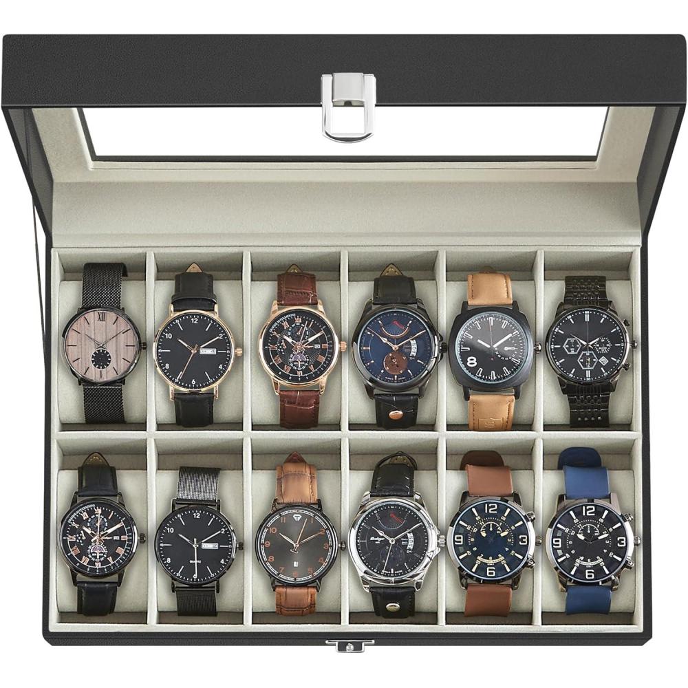 What You Get: A classic watch storage box with 12 slots, watch pillows that can be removed to store jewelry, and a glass lid that protects your watches from dust