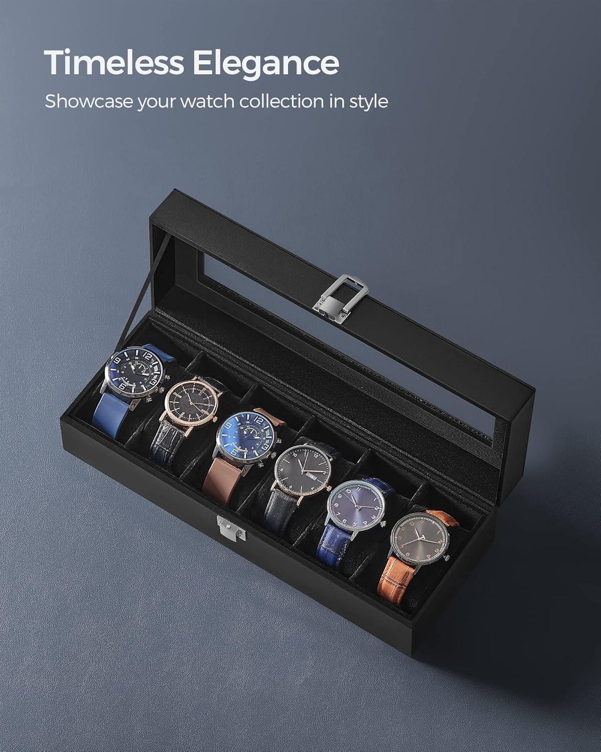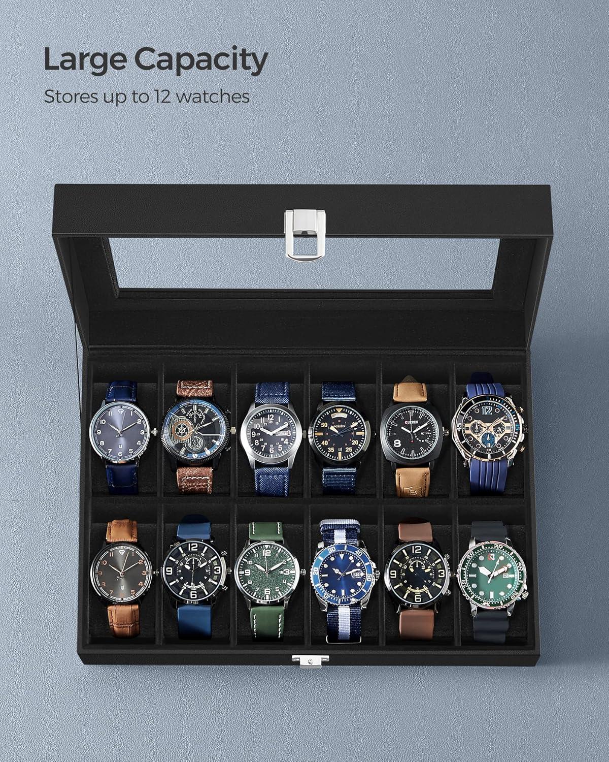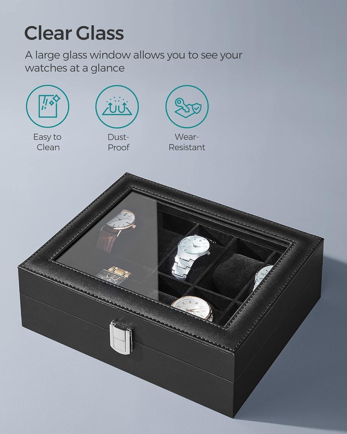 [Clear Glass Lid] The large see-through glass lid of this watch case allows you to see and find the right watch at a glance. Plus, it’s durable and easy to clean
