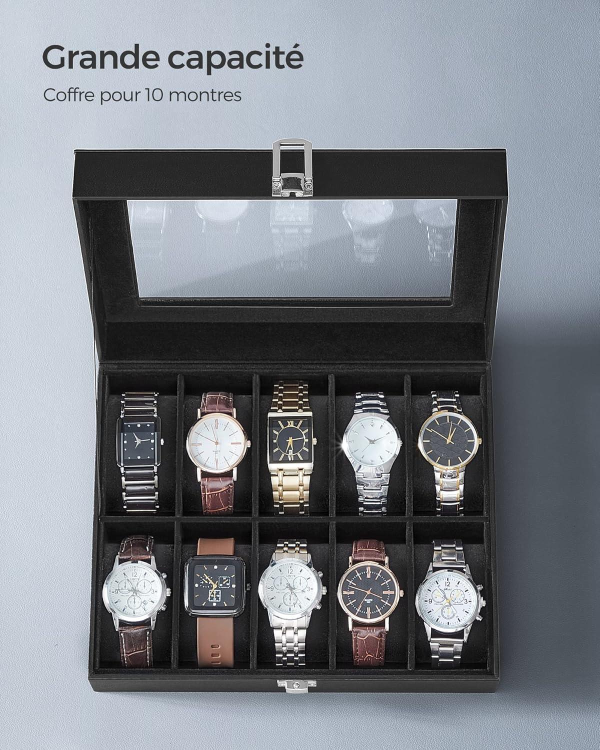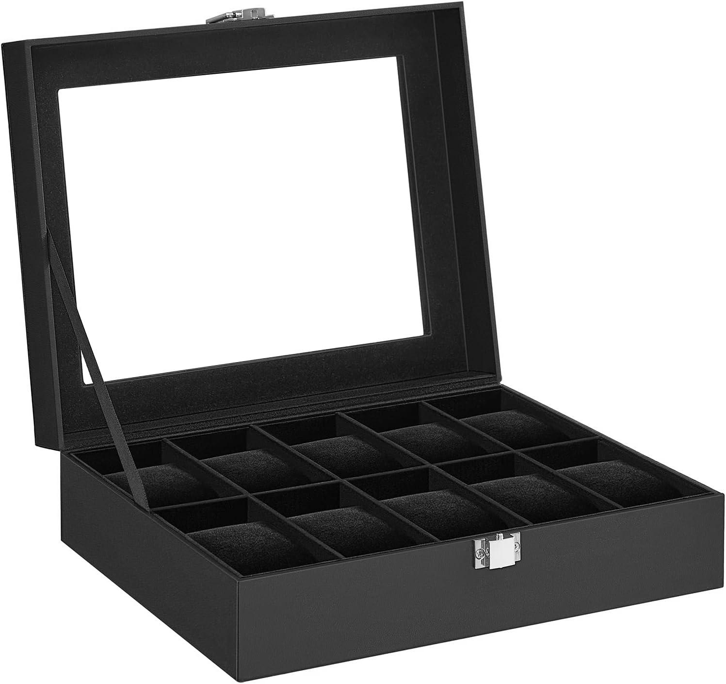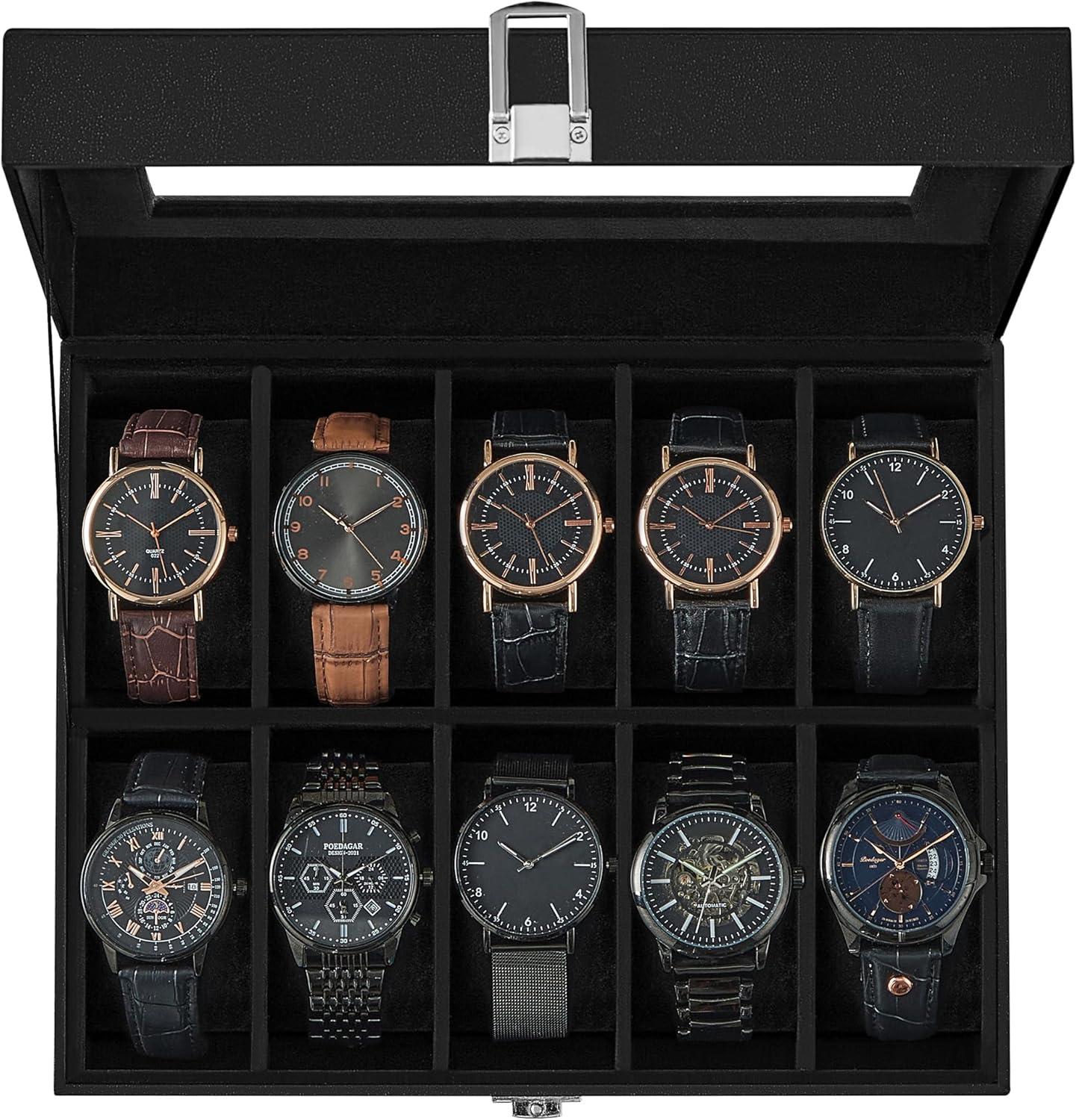 [Clear Glass Lid] The large see-through glass lid of this watch case allows you to see and find the right watch at a glance. Plus, it’s durable and easy to clean