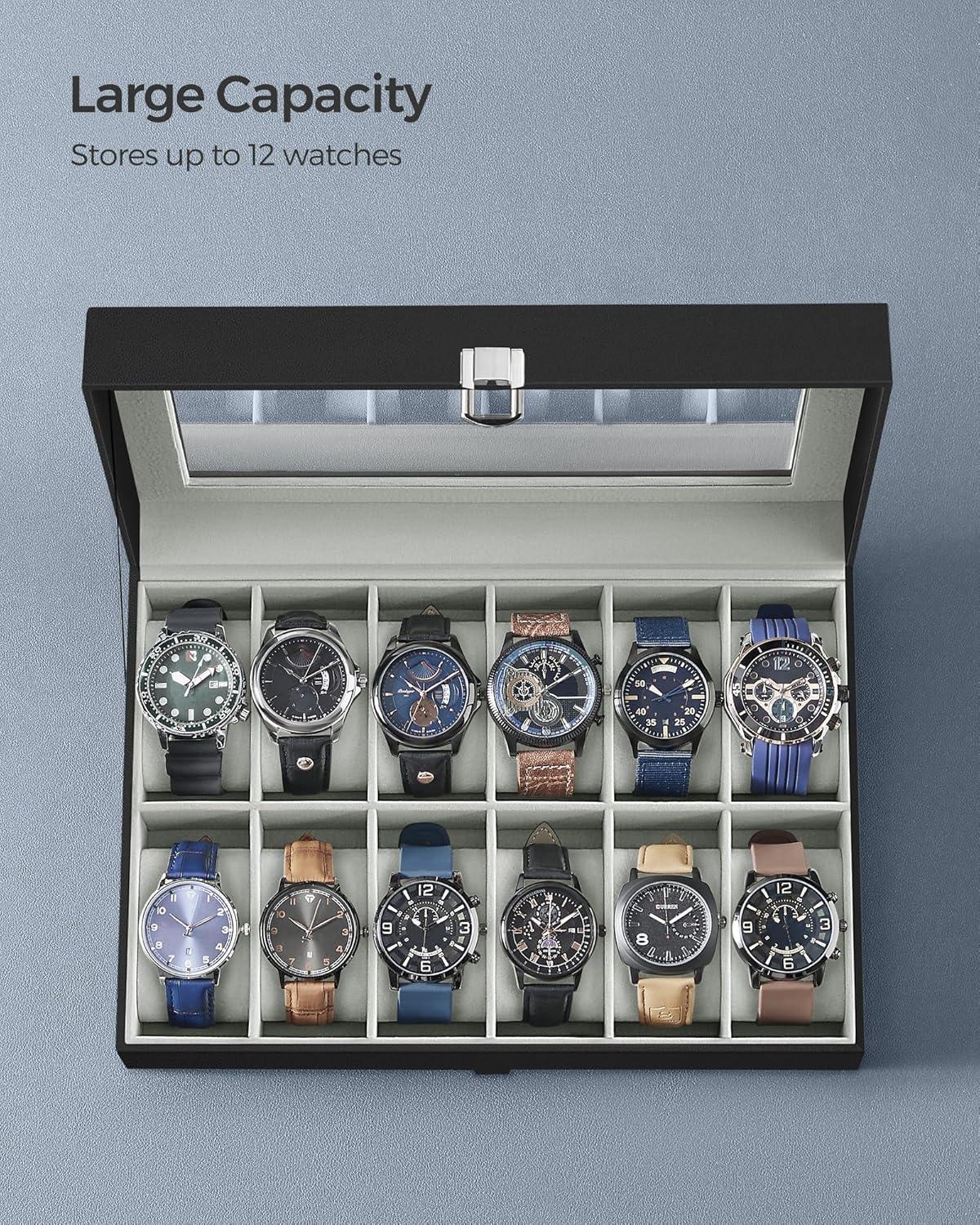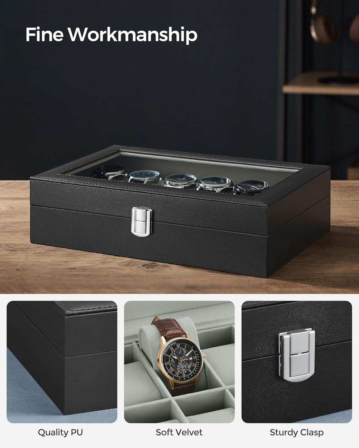 [Clear Glass Lid] The large see-through glass lid of this watch case allows you to see and find the right watch at a glance. Plus, it’s durable and easy to clean