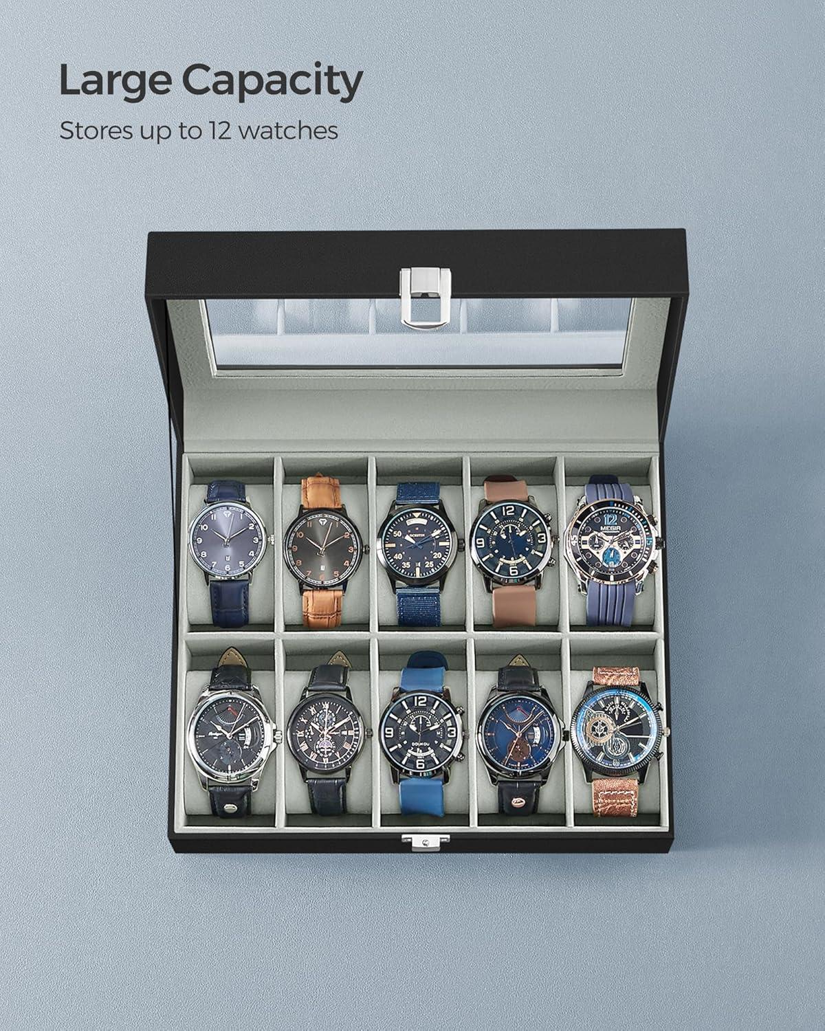 [12 Spacious Watch Slots] This 12-slot watch display case offers enough space for your growing watch collection. Each slot is spacious and can fit different types of watches with a dial size up to 48 mm