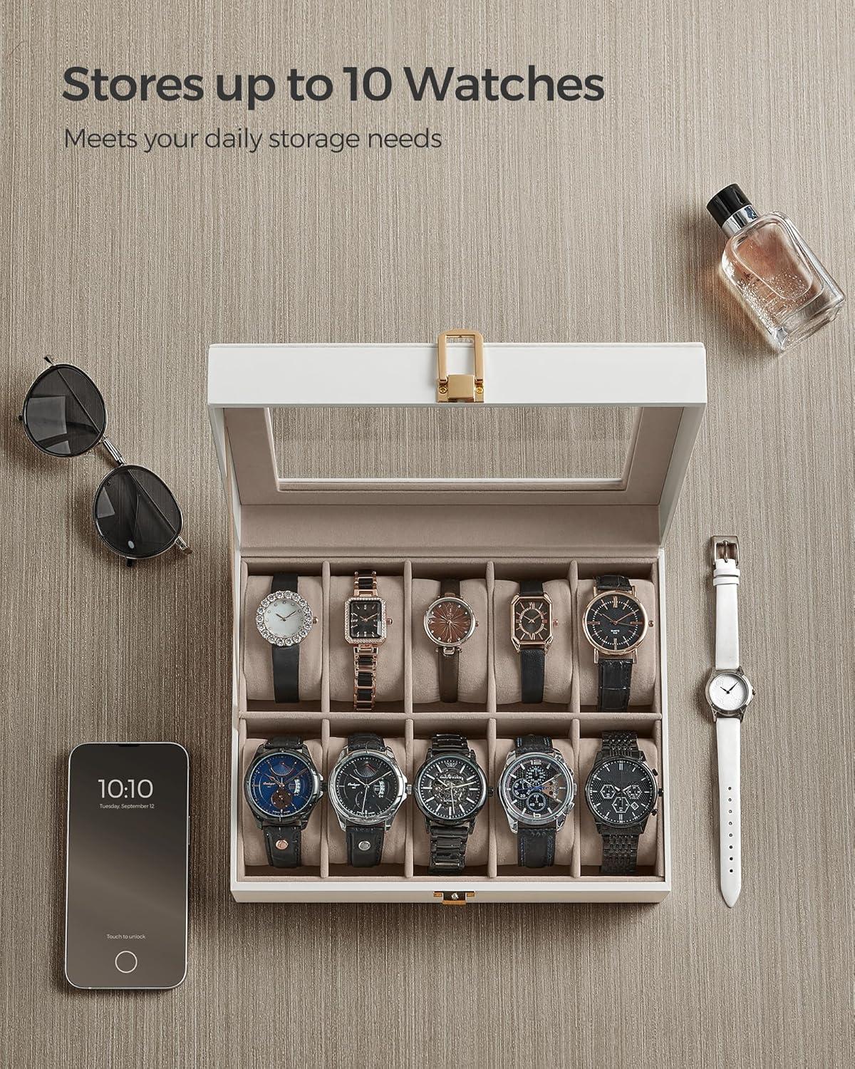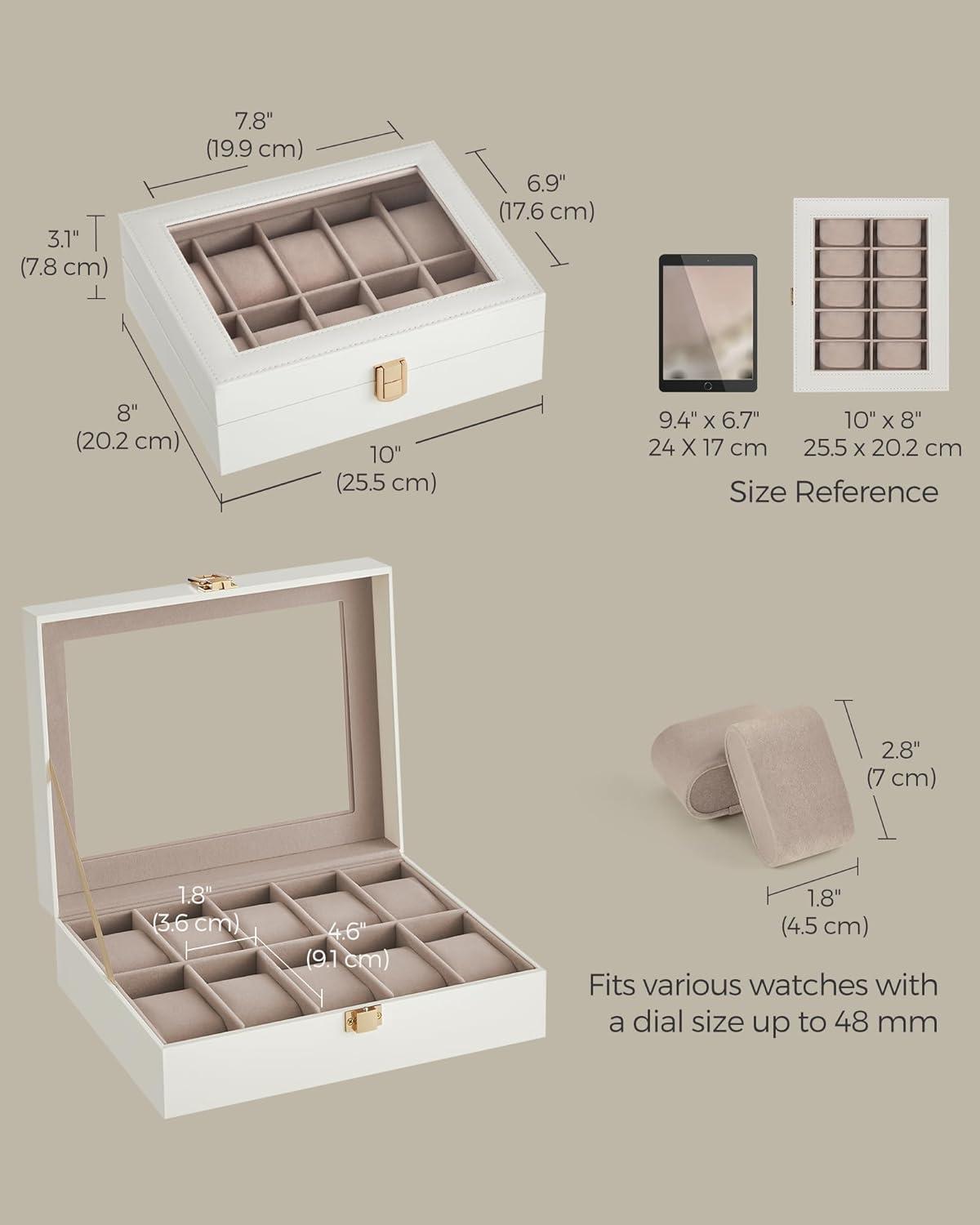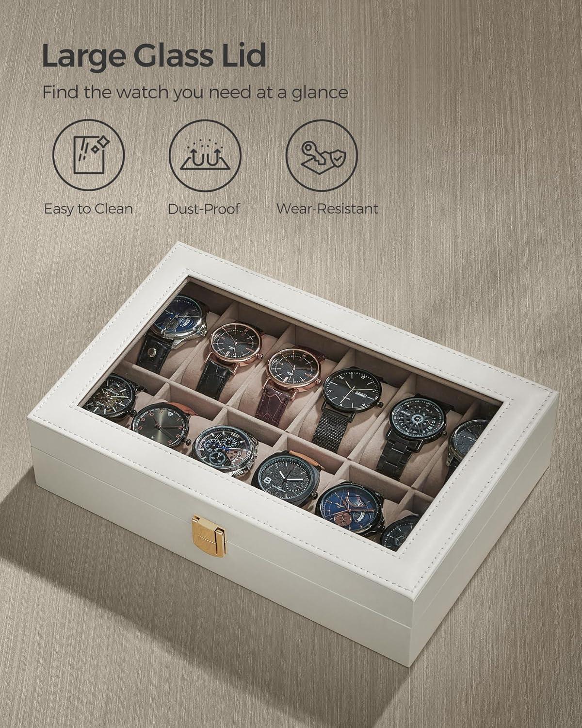 [Clear Glass Lid] The large see-through glass lid of this watch case allows you to see and find the right watch at a glance. Plus, it’s durable and easy to clean