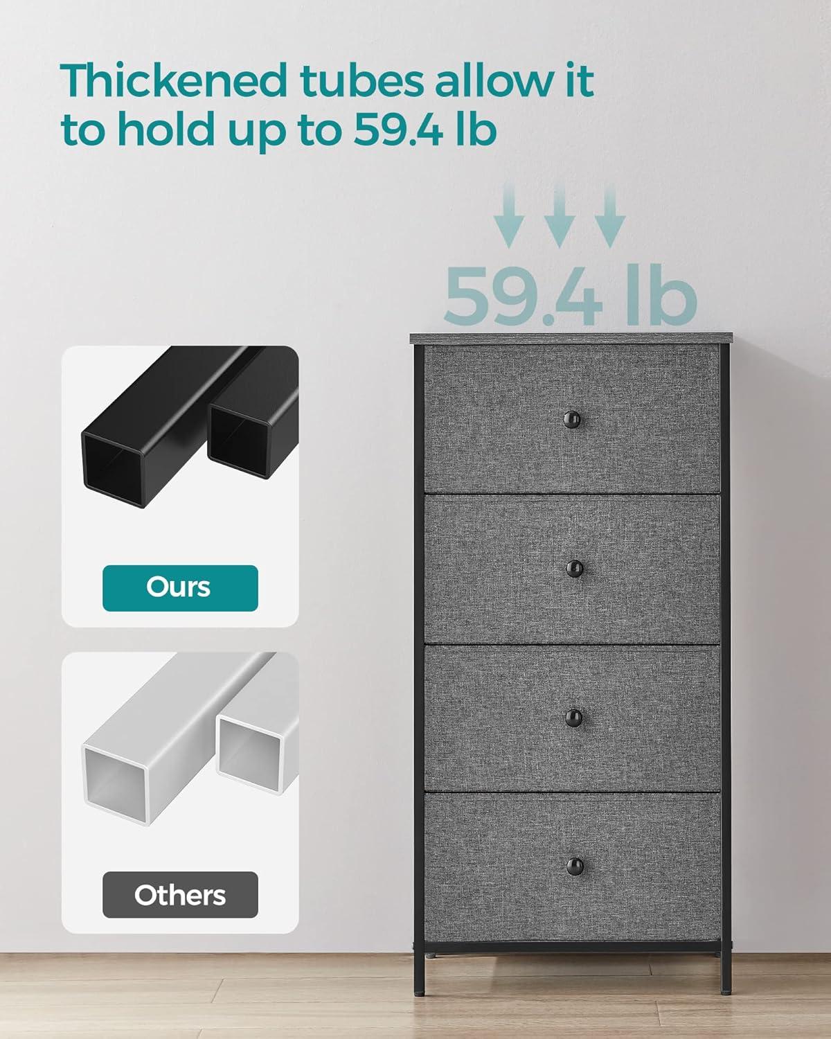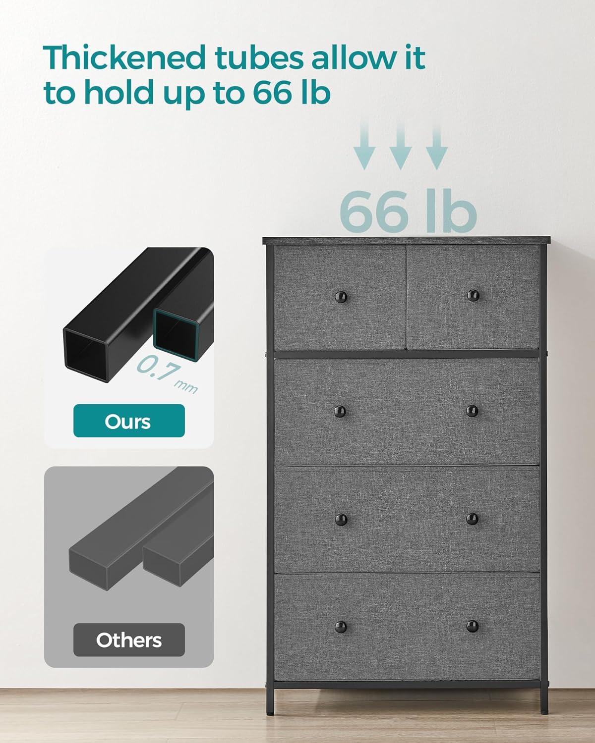 Don't worry if you have kids since the design of this fabric drawer dresser is friendly to young ones. The anti-tip kit included provides a safe environment for your family, and fabric drawers won't pinch hands if little guys want to organize their clothing in drawers on their own.