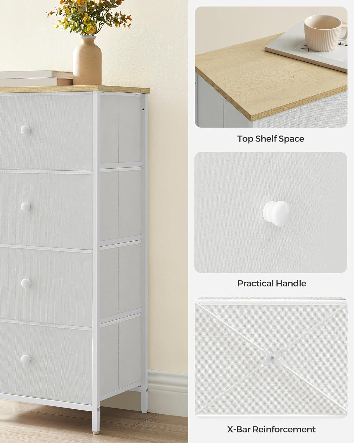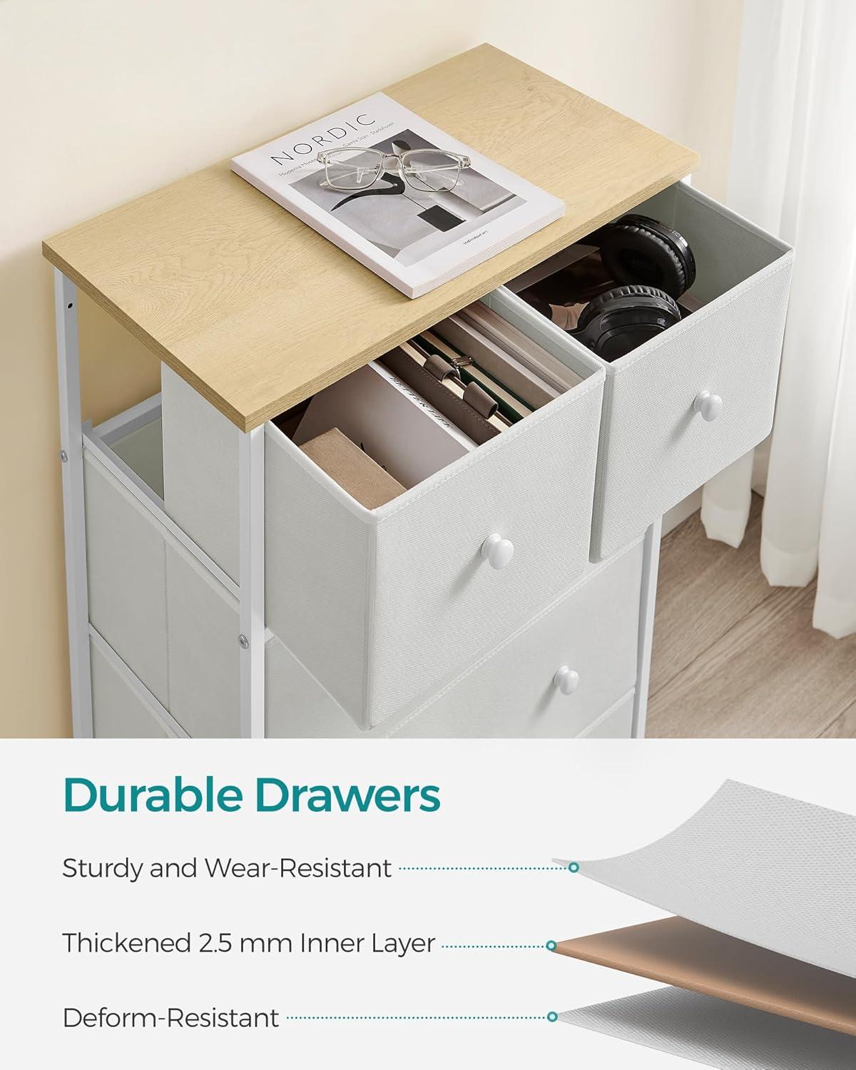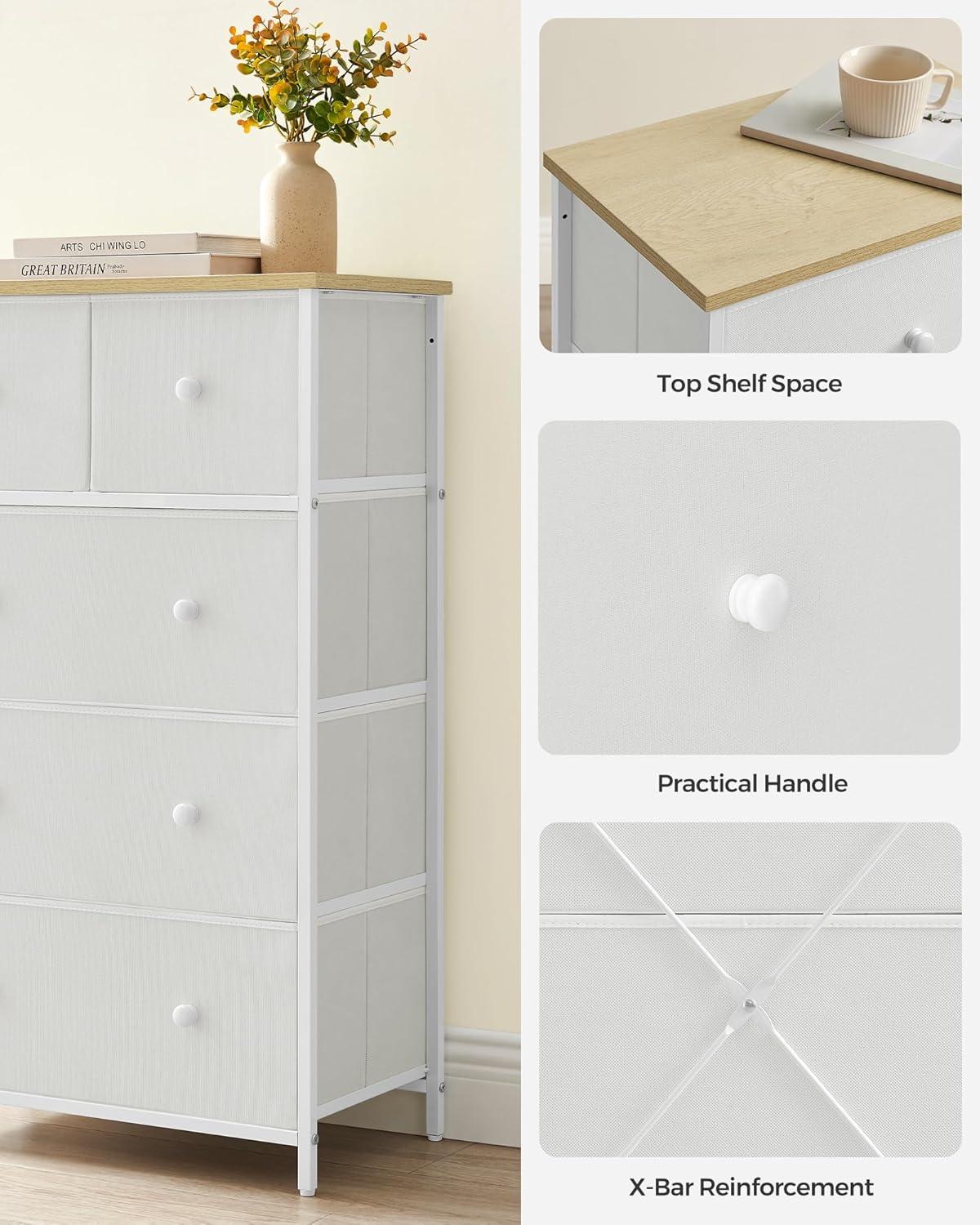 SONGMICS10 Drawers Wide Dresser, 10 Drawers 10-Drawer Dresser Storage Tower, Metal Frame, Wooden Top and Front, Fabric Drawers, 10 Drawers Brown and Black ULGS145B01(White + Oak)