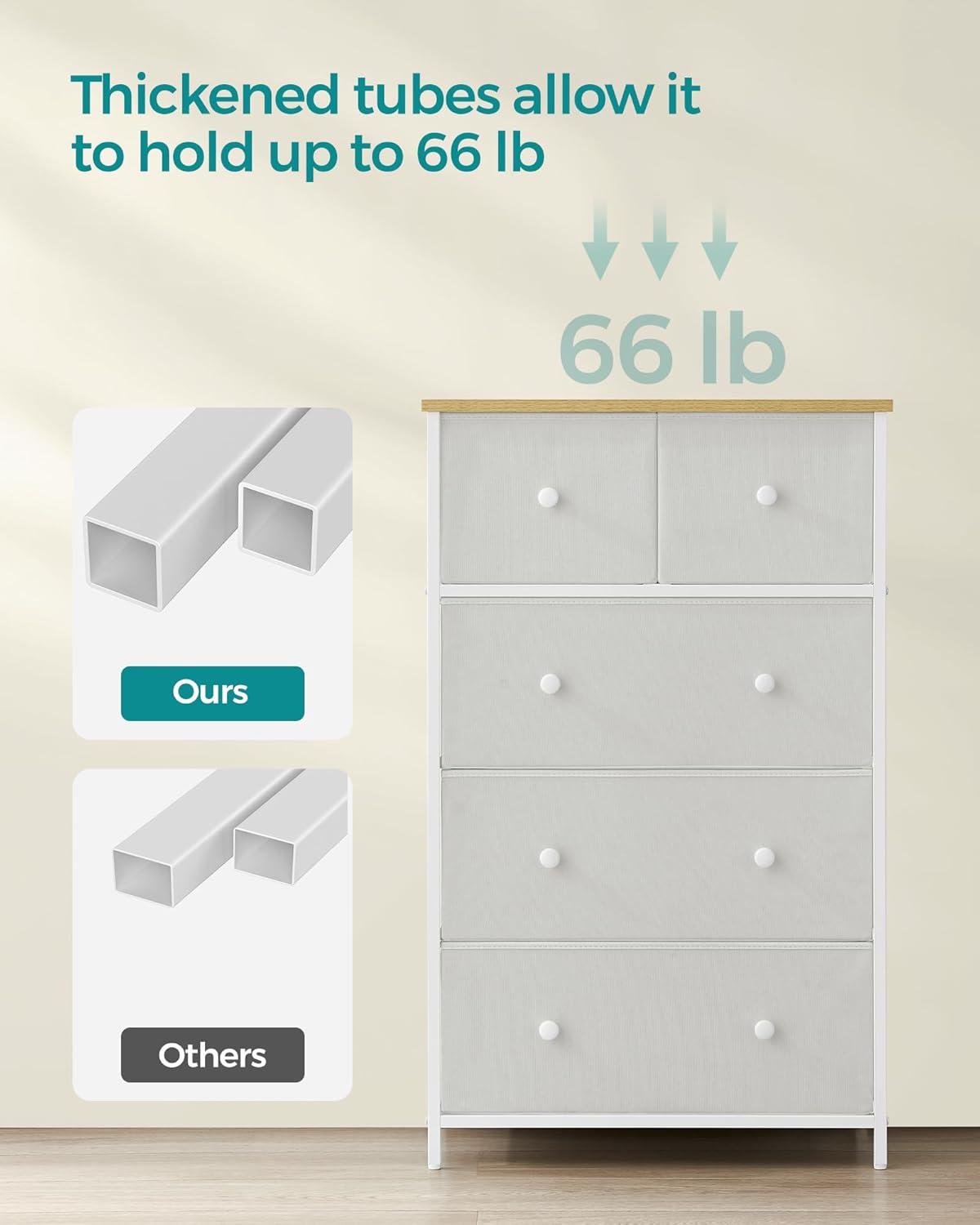Don't worry if you have kids since the design of this fabric drawer dresser is friendly to young ones. The anti-tip kit included provides a safe environment for your family, and fabric drawers won't pinch hands if little guys want to organize their clothing in drawers on their own.