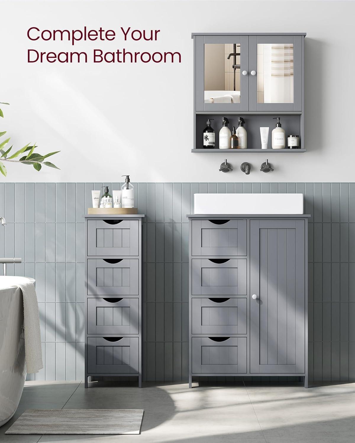 VASAGLE Bathroom Cabinet with Mirror, Wall Cabinet with 2 Mirrored Doors, Adjustable Shelf, Open Compartment, Wall-Mounted, 5.1 x 22.2 x 23 Inches, Sage Green ULHC002C02(Dove Gray)