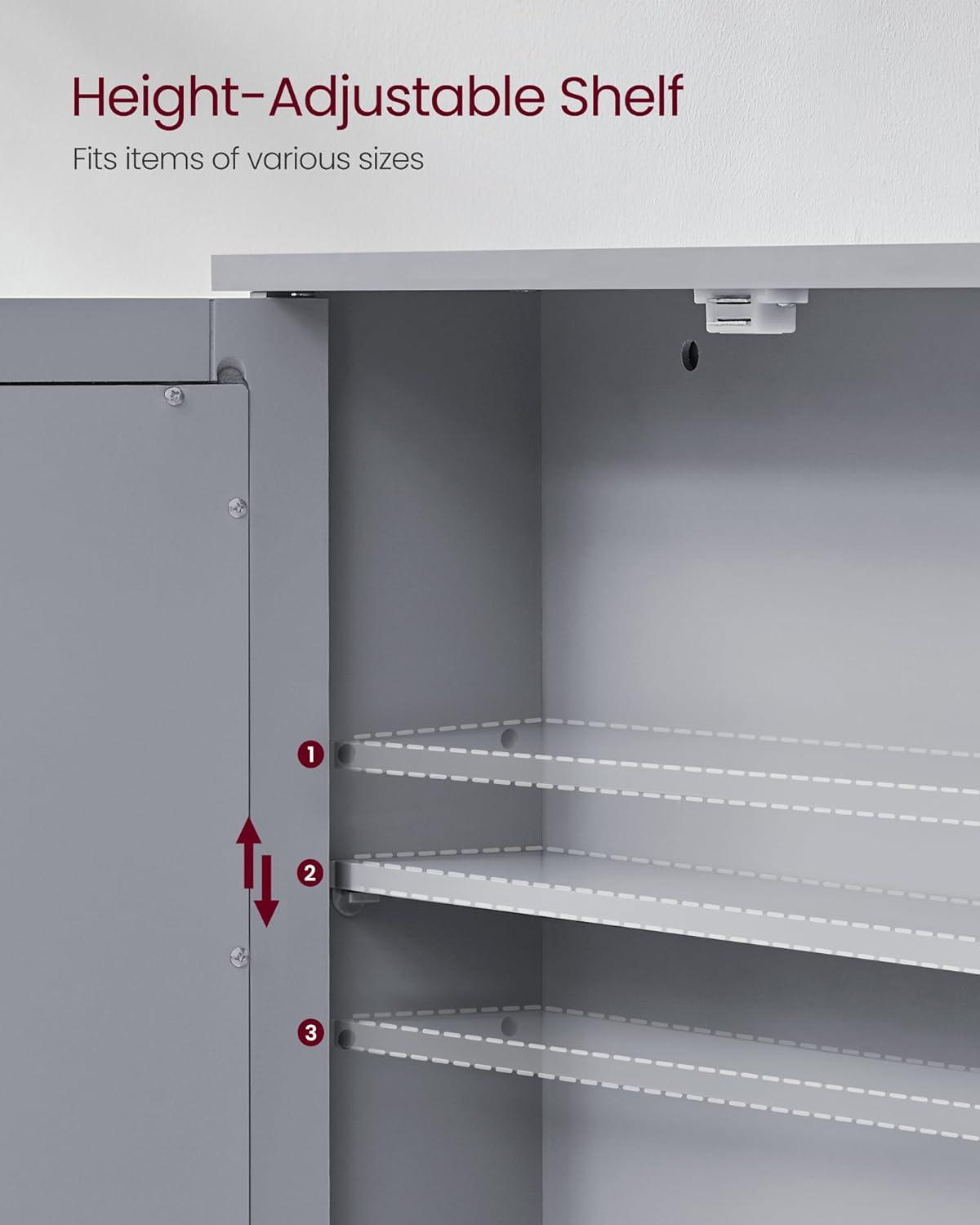 [Height-Adjustable Shelf] Behind the doors, there’s a shelf that offers 3 height options. Your bathroom essentials of different heights can all find a home here