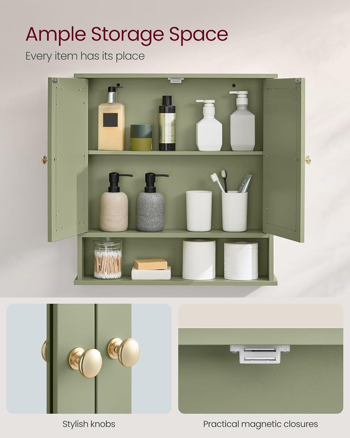 [Height-Adjustable Shelf] Behind the doors, there’s a shelf that offers 3 height options. Your bathroom essentials of different heights can all find a home here