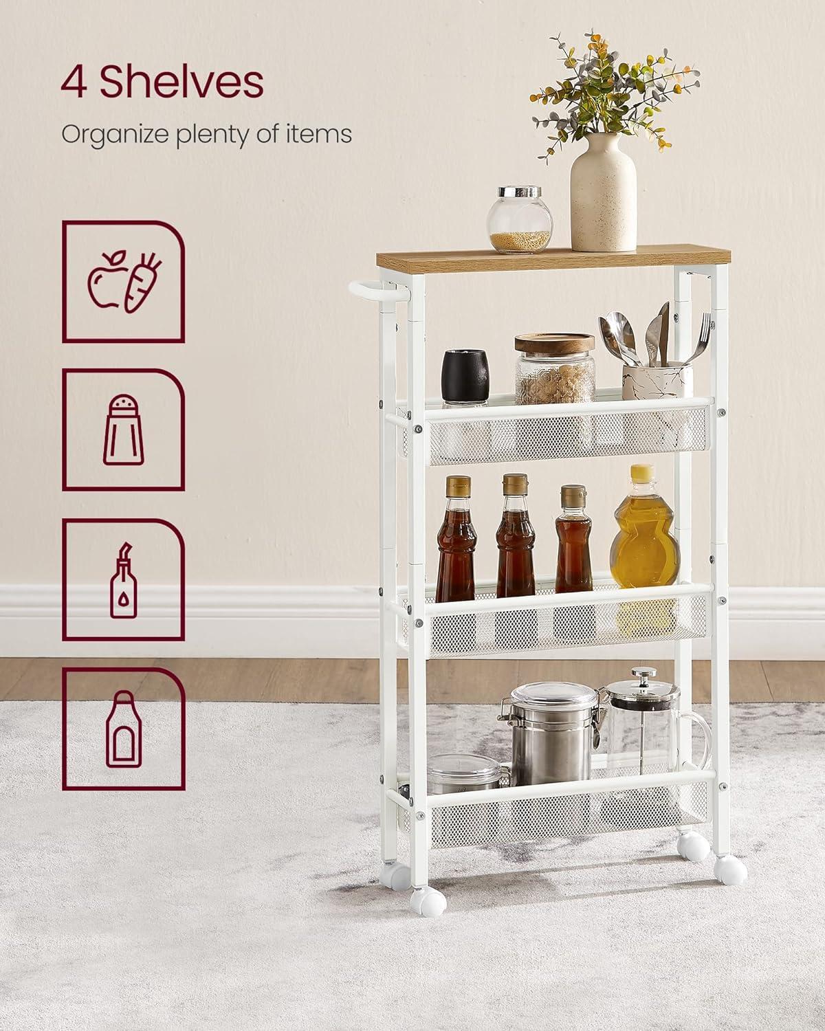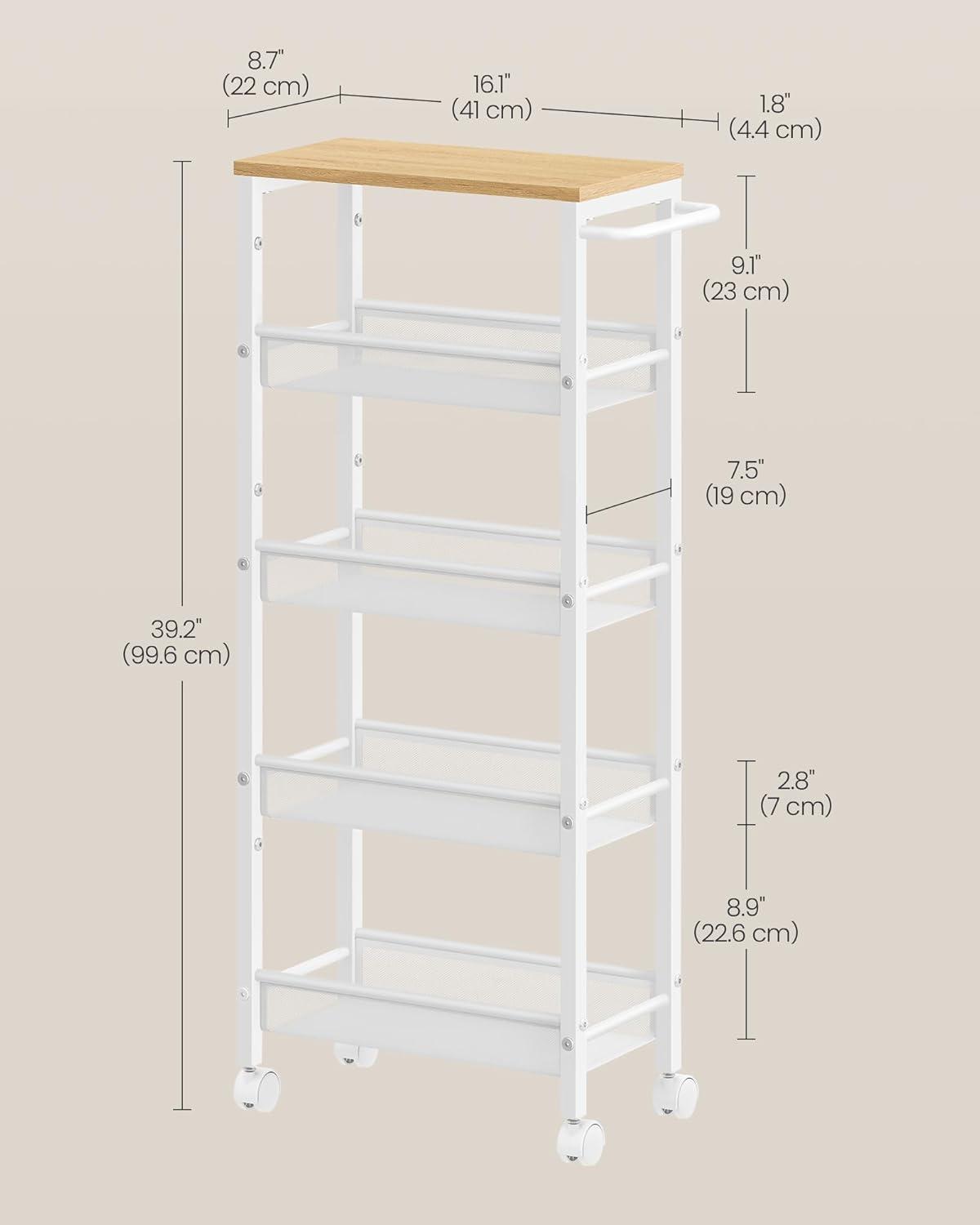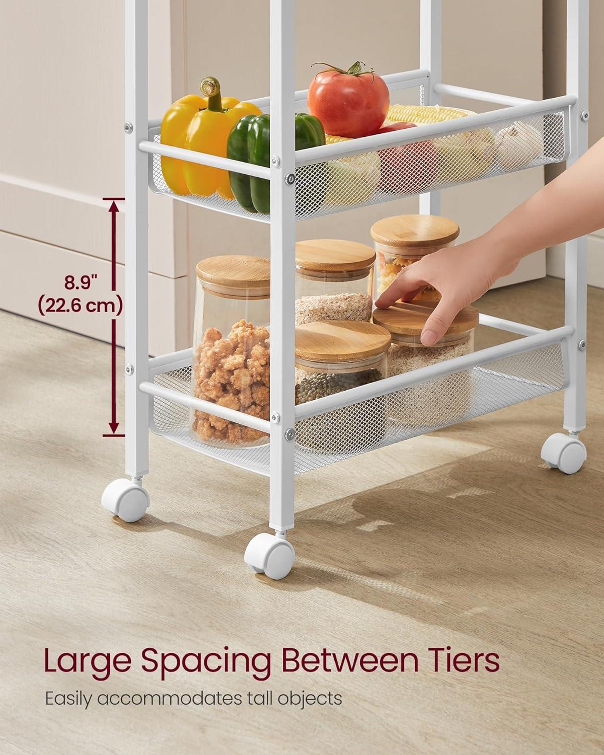 【STURDY AND DURABLE】Crafted with robust steel and quality particleboard, this slim storage cart is durable for years to come