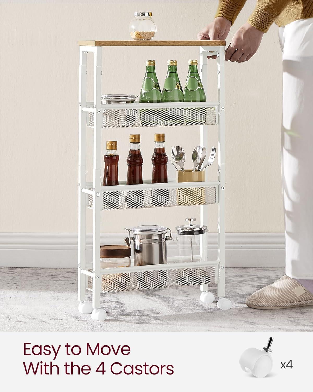 【4-TIER STORAGE】Set your most frequently used spice bottles on the top shelf, and store the coffee bean jars and snacks in the 3 storage baskets below—4 shelves offer oodles of space